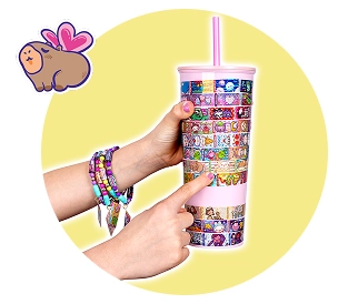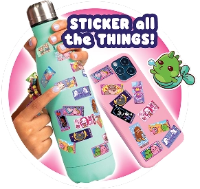 Each Sticki Roll on your bracelet is actually a roll of 10 holographic mini stickers that you can pull, tear and share! 70 in every pack, each with different cute, kawaii characters! Decorate, share, and collect. Every Sticki Roll in the band has a recyclable core that can be easily removed and replaced with new Sticki Rolls using our Quick-Grip clasp, so Sticki Rolls stickers are easy to pull off and share! Each pack also includes two mystery rolls with super rare or ultra rare to “unbox” and discover! Made with holographic foil, Sticki Rolls leave no residue and can be restuck on notebooks, bottles, or anywhere else you want to decorate. With over 1,000 unique designs to collect, every roll brings a fresh surprise!